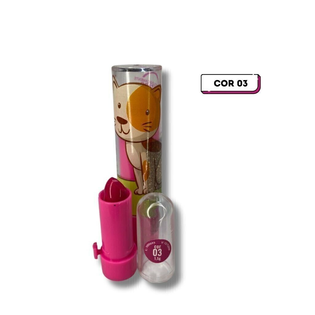BATOM GATINHA - Batom Infantil da Maria Pink Encante as pequenas com o Batom Unicórnio, um batom infantil da Maria Pink que traz 3 tons de rosa para deixar o visual delicado e divertido. Sua fórmula suave é perfeita para a pele sensível das crianças, além de proporcionar um acabamento leve e brilhante, ideal para as pequenas explorarem o mundo da maquiagem com segurança. Leve, prático e cheio de charme, o Batom Unicórnio é o toque mágico que faltava no estojo de beleza das crianças.